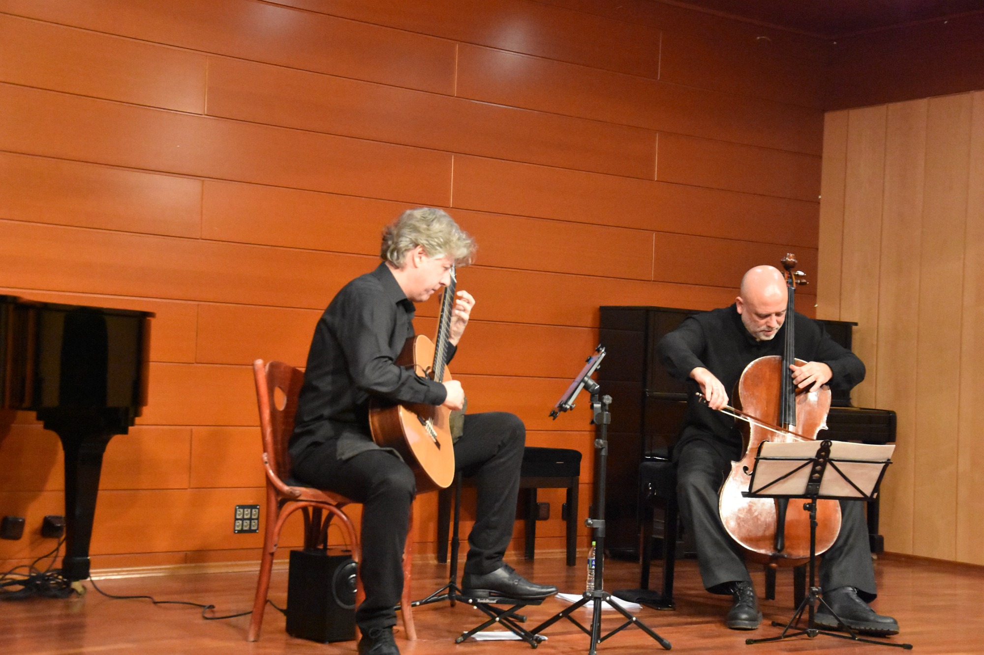 Οι δύο καταξιωμένοι καλλιτέχνες Δήμος Γκουνταρούλης (τσέλο) και Θάνος Μήτσαλας (κιθάρα) παρουσίασαν ένα υψηλού επιπέδου μουσικό πρόγραμμα, αναδεικνύοντας με ευρηματικό και καλλιτεχνικά άρτιο τρόπο τη σπάνια συνύπαρξη των δύο οργάνων. Μέσα από ευφάνταστες συνθέσεις και ερμηνείες υψηλής αισθητικής, κατάφεραν να αιχμαλωτίσουν το ενδιαφέρον και τις αισθήσεις του κοινού, το οποίο ανταποκρίθηκε με θερμό χειροκρότημα.
