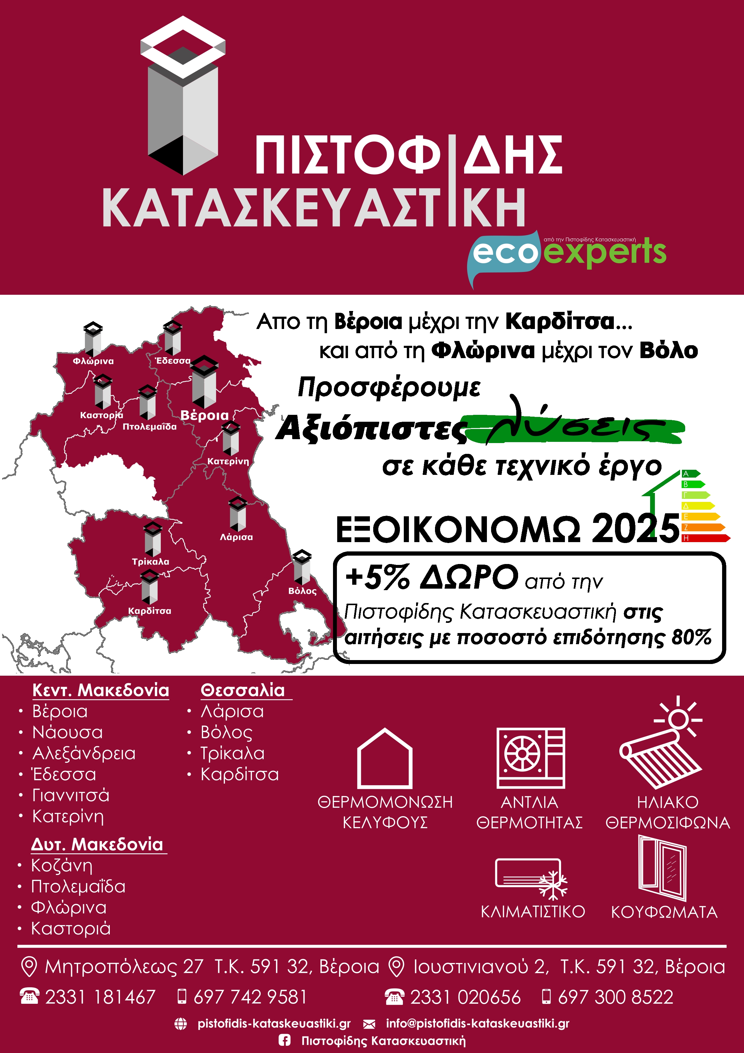 Εξοικονομώ 2025: Η "Πιστοφίδης Κατασκευαστική" προσφέρει αξιόπιστες λύσεις σε κάθε τεχνικό έργο!