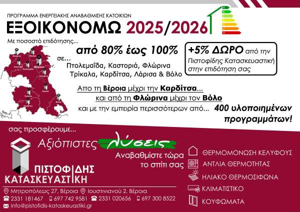ΠΙΣΤΟΦΙΔΗΣ ΚΑΤΑΣΚΕΥΑΣΤΙΚΗ. Η αξιόπιστη λύση στα προγράμματα ΕΞΟΙΚΟΝΟΜΩ!